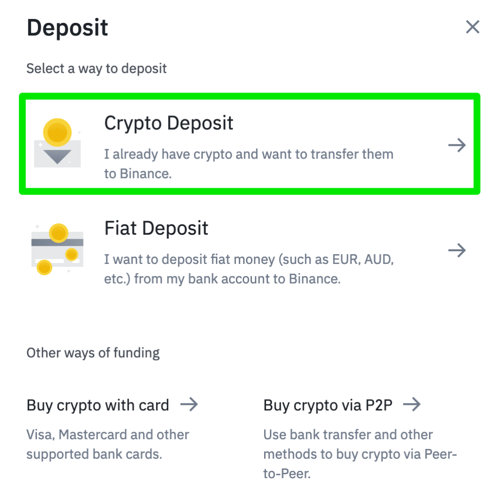 Crypto van Bitvavo naar Binance storten