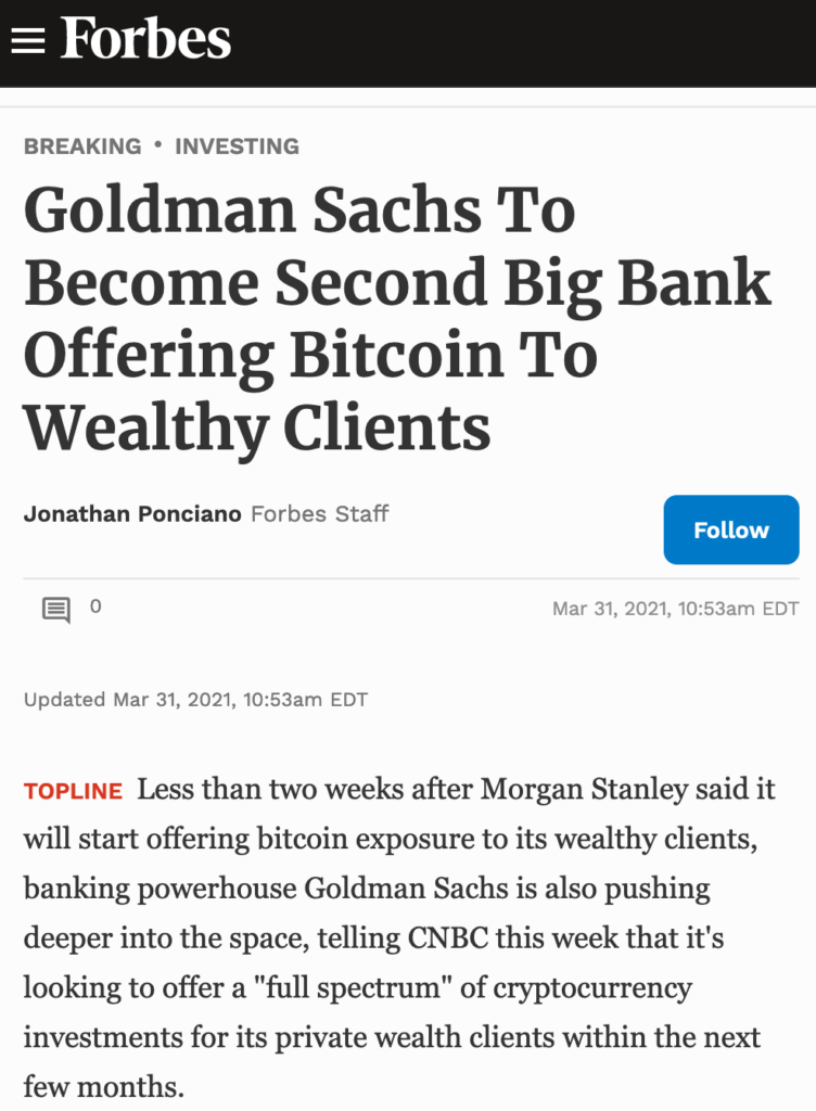 Dat FUD gebruikt wordt om de markt te manipuleren kunnen we eigenlijk wel stellen als we een artikel over Goldman Sachs lezen in maart 2021.